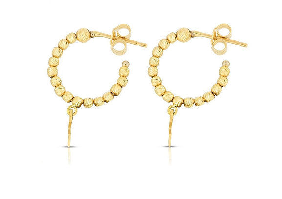 14K Yellow Gold Polished Star Charm Drops on a Beaded Hoop with Push Back Clasp
