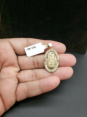 14k Yellow Gold And Rose Gold Cubic Zirconia Virgin Guadalupe Pendant