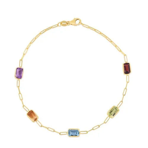 14K Yellow Gold Multi-Gemstone Paperclip with Lobster Clasp