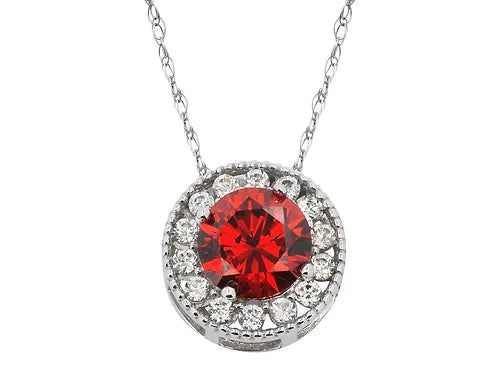 14K White Gold Birthstone and Cubic Zirconia Halo Round Pendant